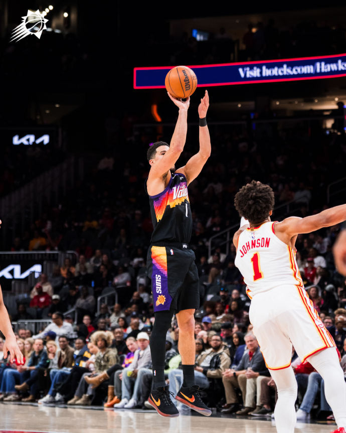 布克今天表现出色,仅出战28分钟,投篮21中12,三分球9中5,罚球2中2,空砍31分4篮板3助攻1抢断的数据。第三节比赛,布克火力全开,单节独得16分,但因为崴脚末节没有再登场。