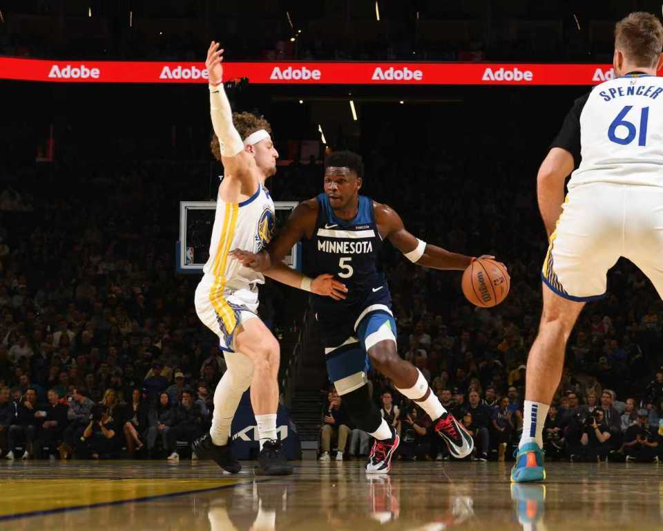 勇士过去3场连输雷霆、爵士与公牛遭遇3连败,森林狼过去3场连输魔术、湖人与快船遭遇3连败,本赛季前三次交锋勇士1胜2负处于下风。本场勇士缺少库里、穆迪、巴特勒、追梦,首节开局双方5-5,双方交替领先缠斗至森林狼11-12落后,森林狼连得4分取得领先。勇士一波7-0攻势反超,里德与波杰姆斯基对攻一记三分,森林狼连得5分反超。双方继续紧咬比分缠斗,森林狼首节末段取得微弱优势,首节结束森林狼31-28领先勇士。首节森林狼23中8,其中三分10中4,爱德华兹4中1得到9+3+2;勇士23中9,其中三分11中4,波尔津吉斯7分与波杰姆斯基8分。